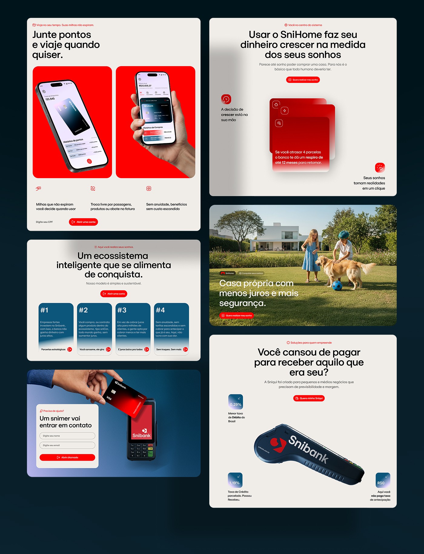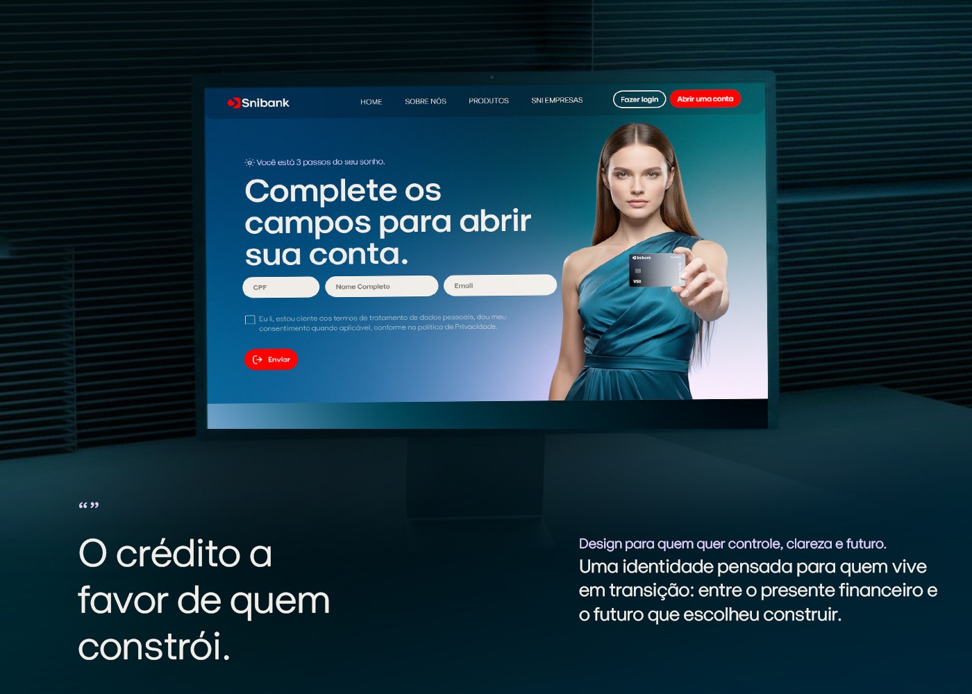 Um ecossistema inteligente que se alimenta de conquista. O Snibank nasce como uma ruptura consciente no mercado financeiro tradicional. Mais do que um banco digital, é uma plataforma financeira pensada para pessoas que enxergam o longo prazo, constroem algo maior do que o agora e acreditam que o dinheiro deve impulsionar sonhos não aprisioná-los em dívidas intermináveis. Unimos tecnologia, visão estratégica e um modelo de negócios mais justo para criar um banco que respeita o cliente, recompensa escolhas inteligentes e cresce junto com quem empreende, investe e usa.